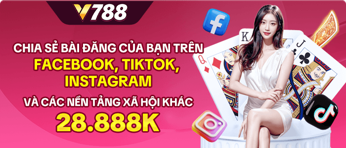 Chỉ vài thao tác đơn giản ai cũng có thể nhận được số tiền 28,888K tại v788g Com khi chỉ cần chia sẻ trang chủ nhà cái trên các nền tảng mạng xã hội như Tik Tok, Facebook, Telegram,…người chơi sẽ nhận được số tiền lớn trải nghiệm.